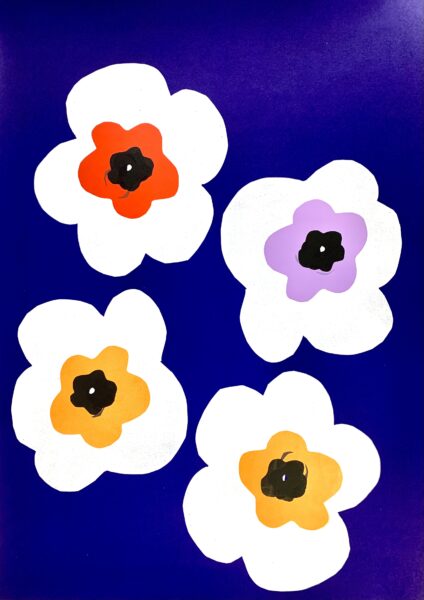 The inspiration to create the works came looking at the beautiful wild poppies, that grow on the side road in my neighbourhood. (Brouce Grove, London)